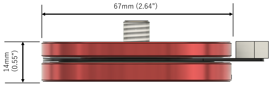 ネジシャフトは3/8インチネジなので1/4インチネジのスマート望遠鏡にそのまま使う事はできません。ただし、ネジシャフト(直径16㎜、高さ13㎜)は市場で広く市販されている3/8-1/4ネジアダプタと同じサイズなので、市販ネジアダプタを使う事で1/4インチネジの望遠鏡にも対応できます。